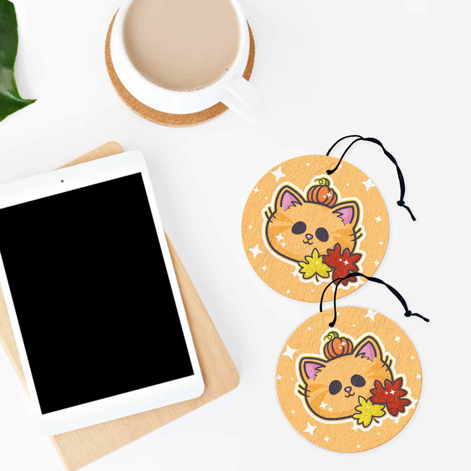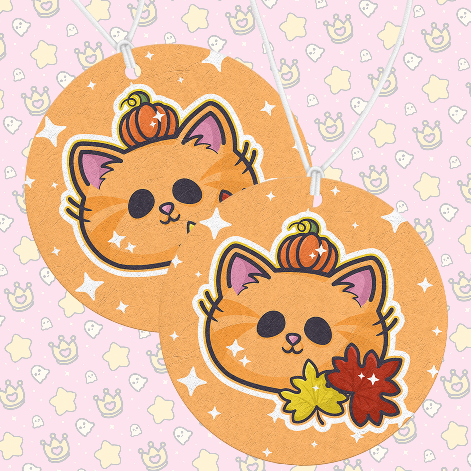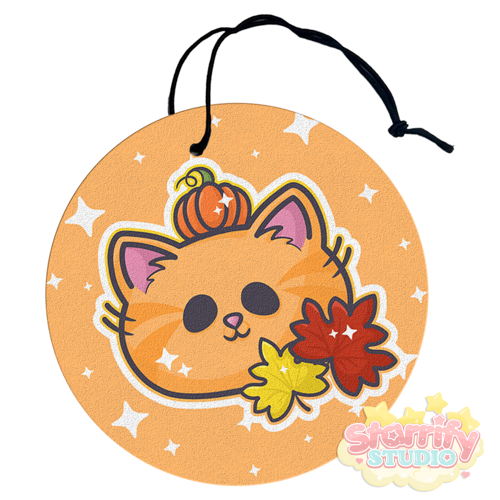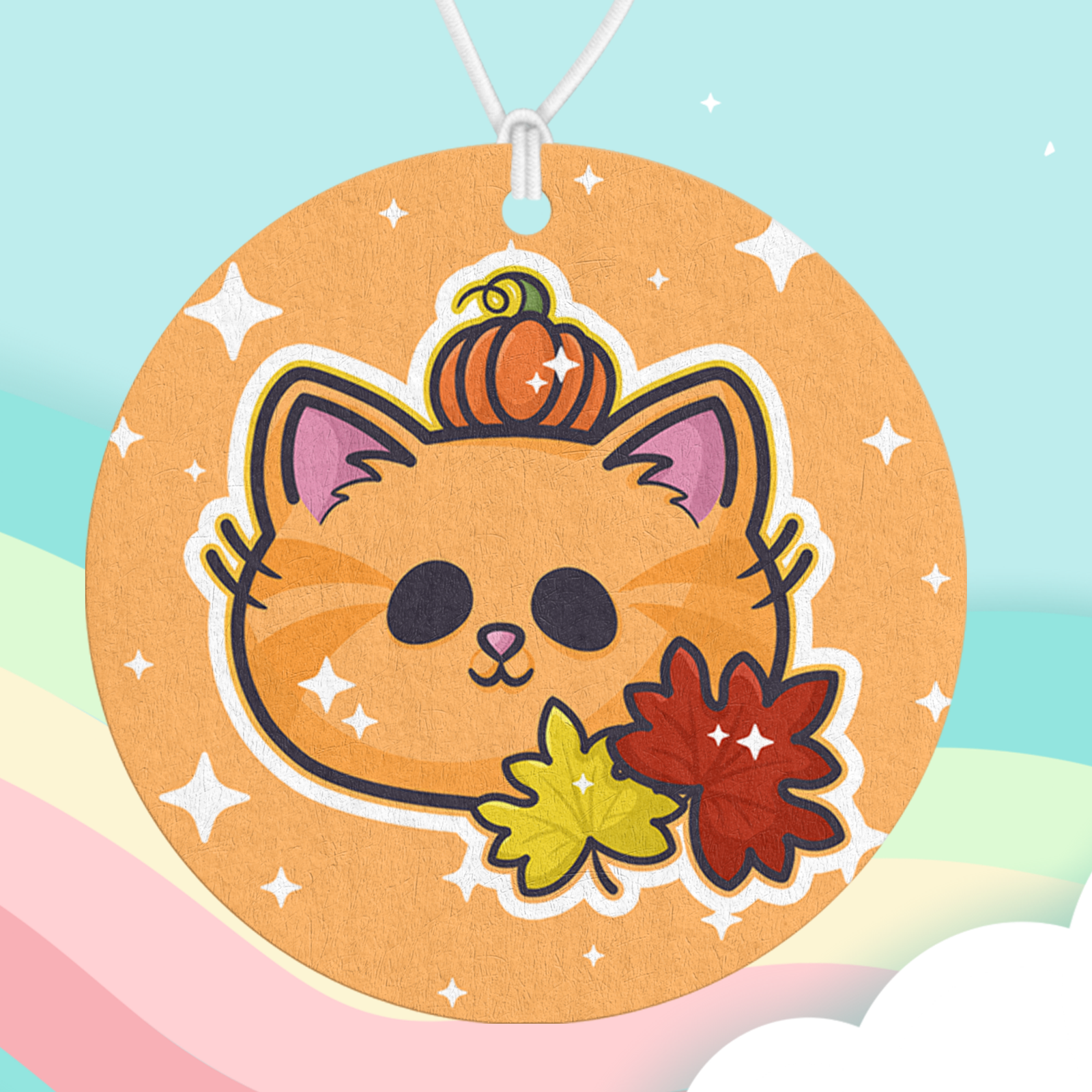 A cozy and seasonal air freshener featuring our Autumn Pumpkin Kitty design. Add your favorite scent and bring a little autumn warmth and charm to your space.