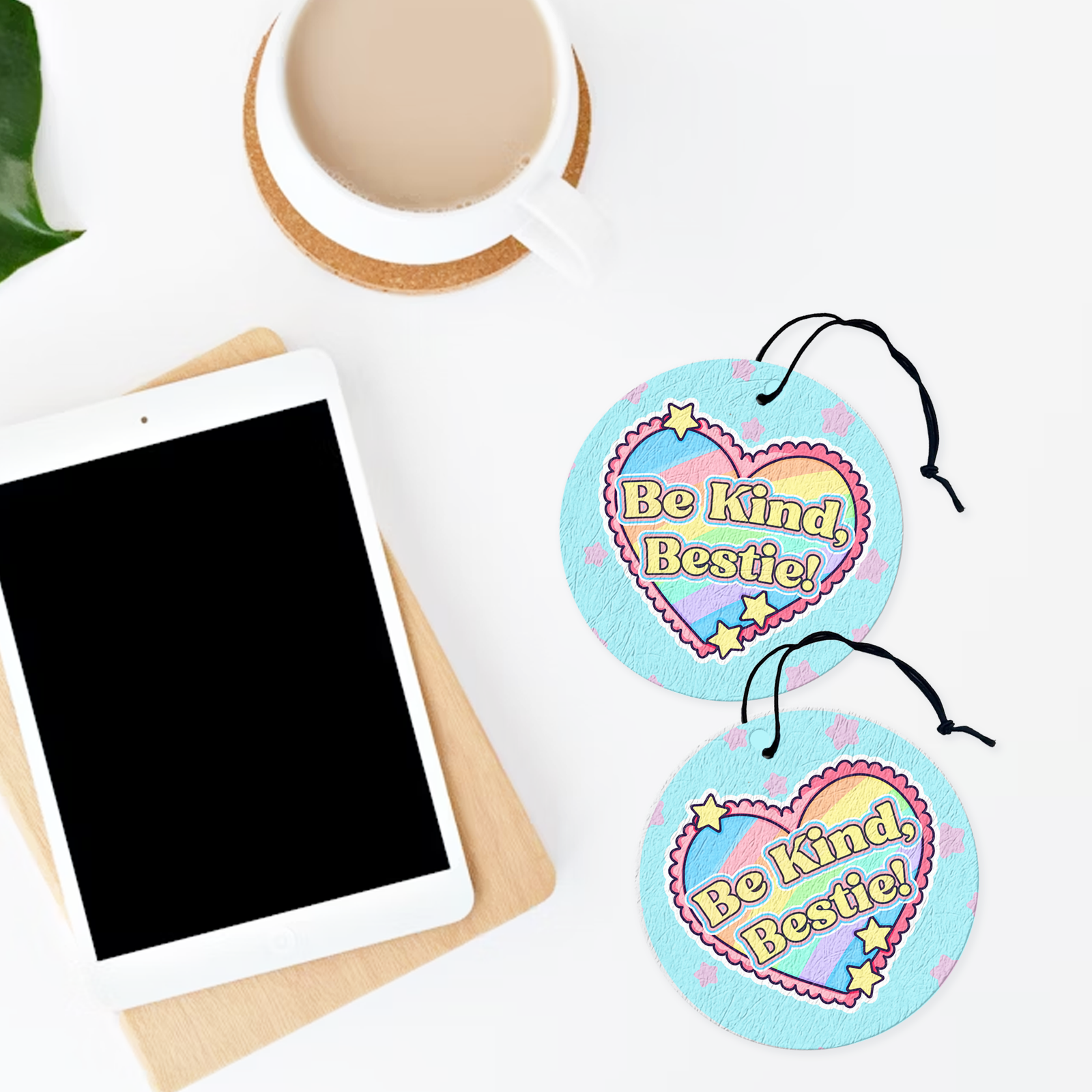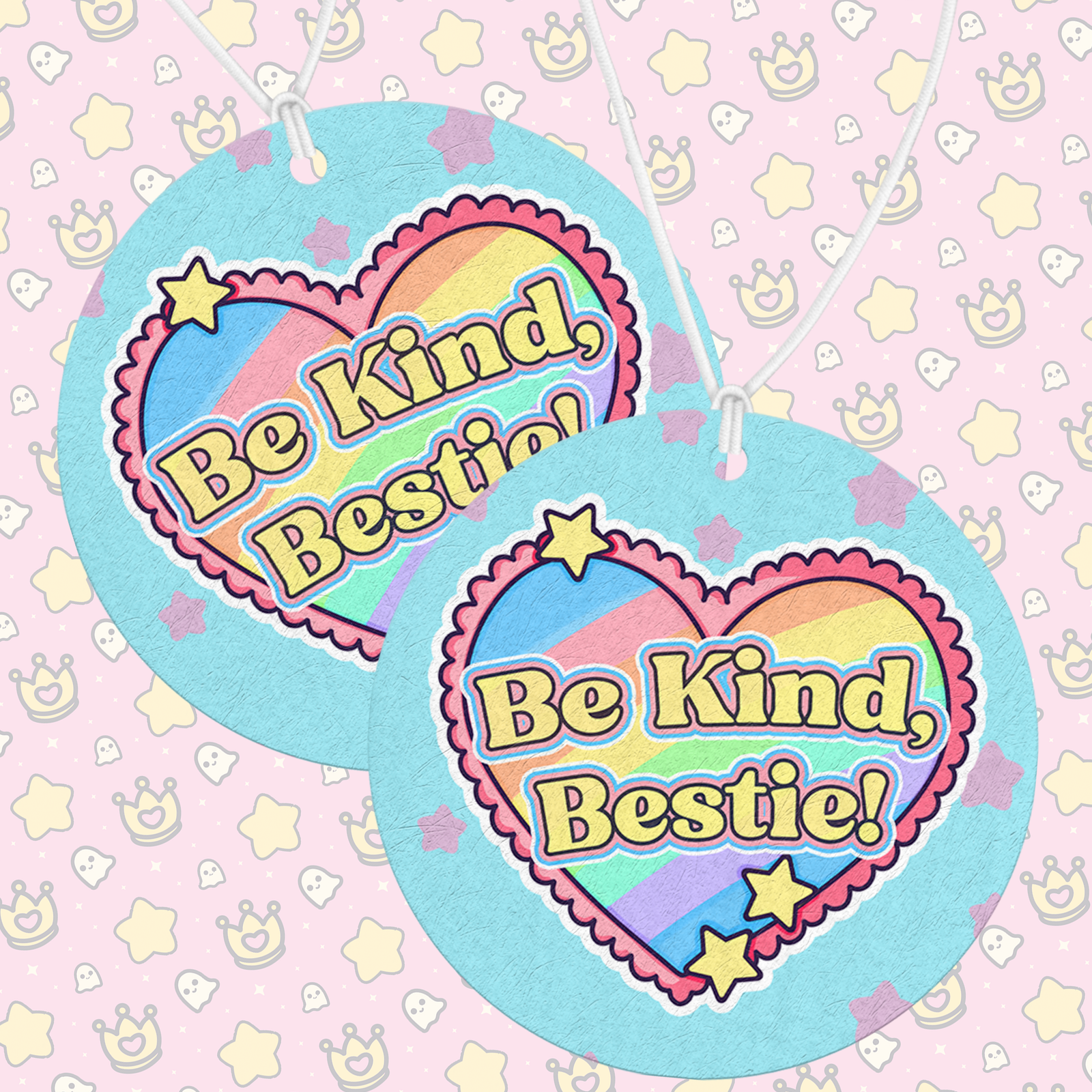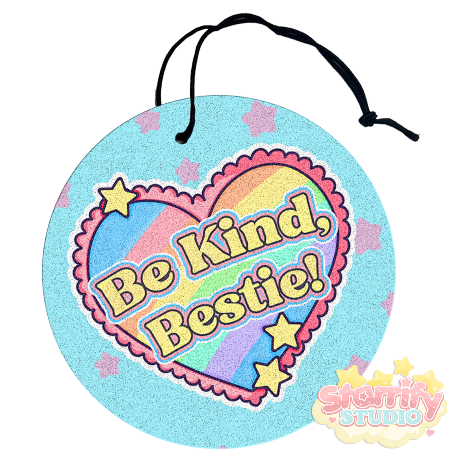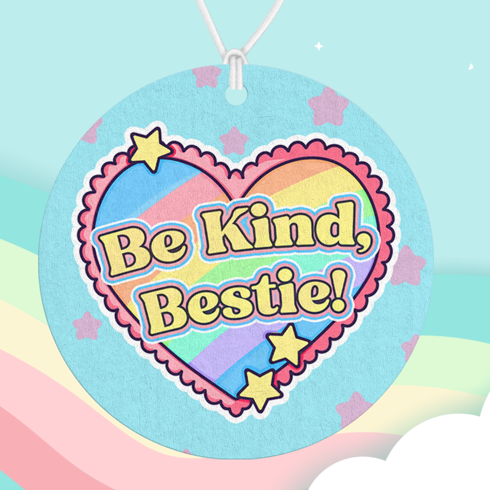A soft and uplifting air freshener featuring our Be Kind Bestie design. Add your favorite scent and bring a little kindness and positivity to your space.