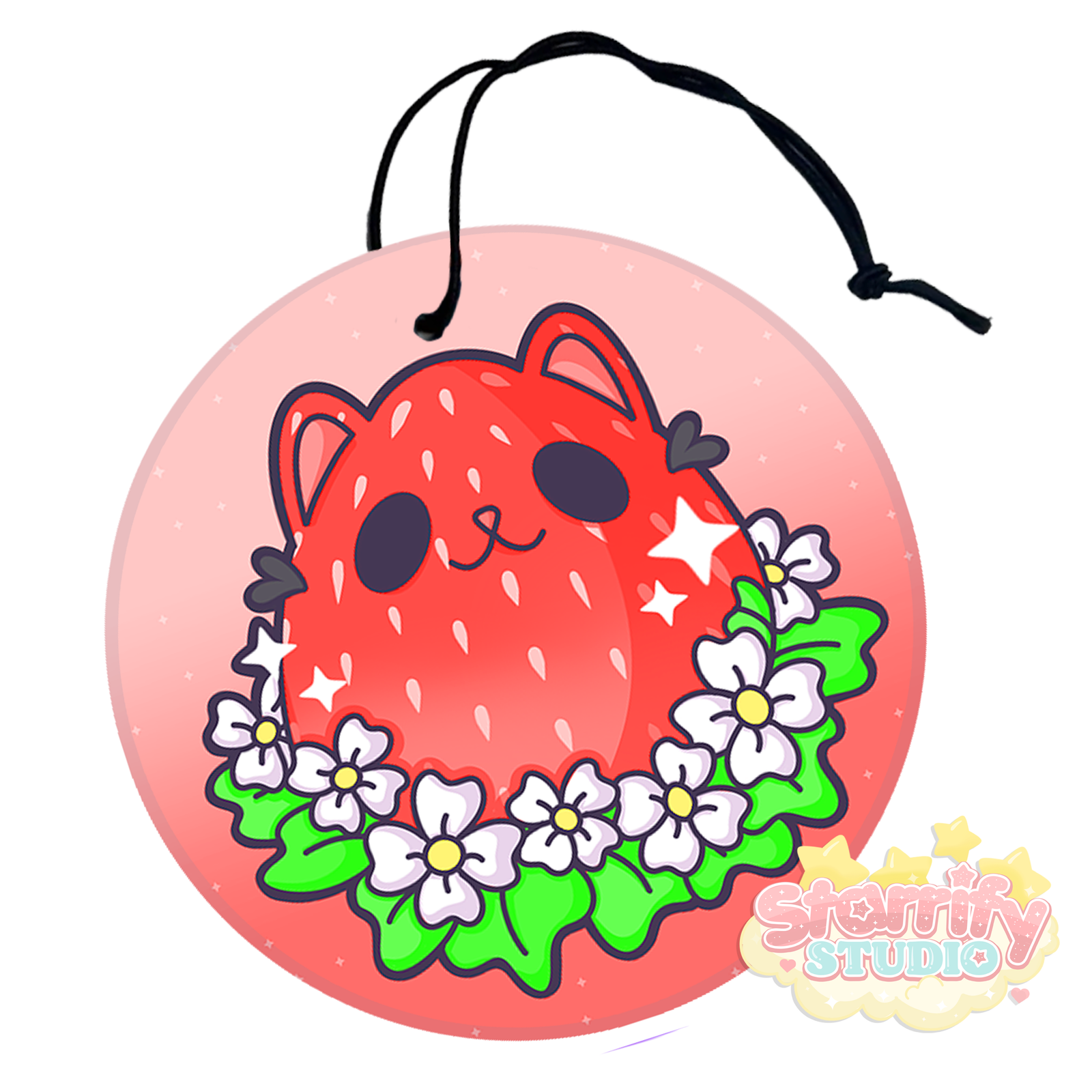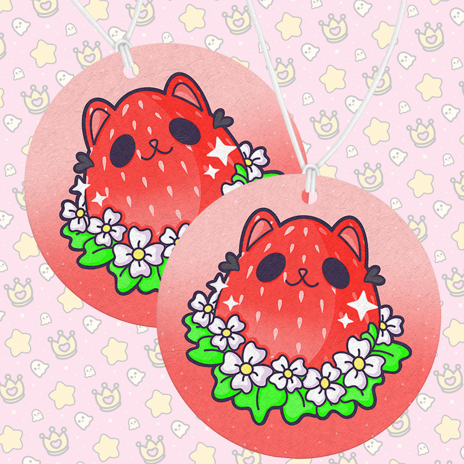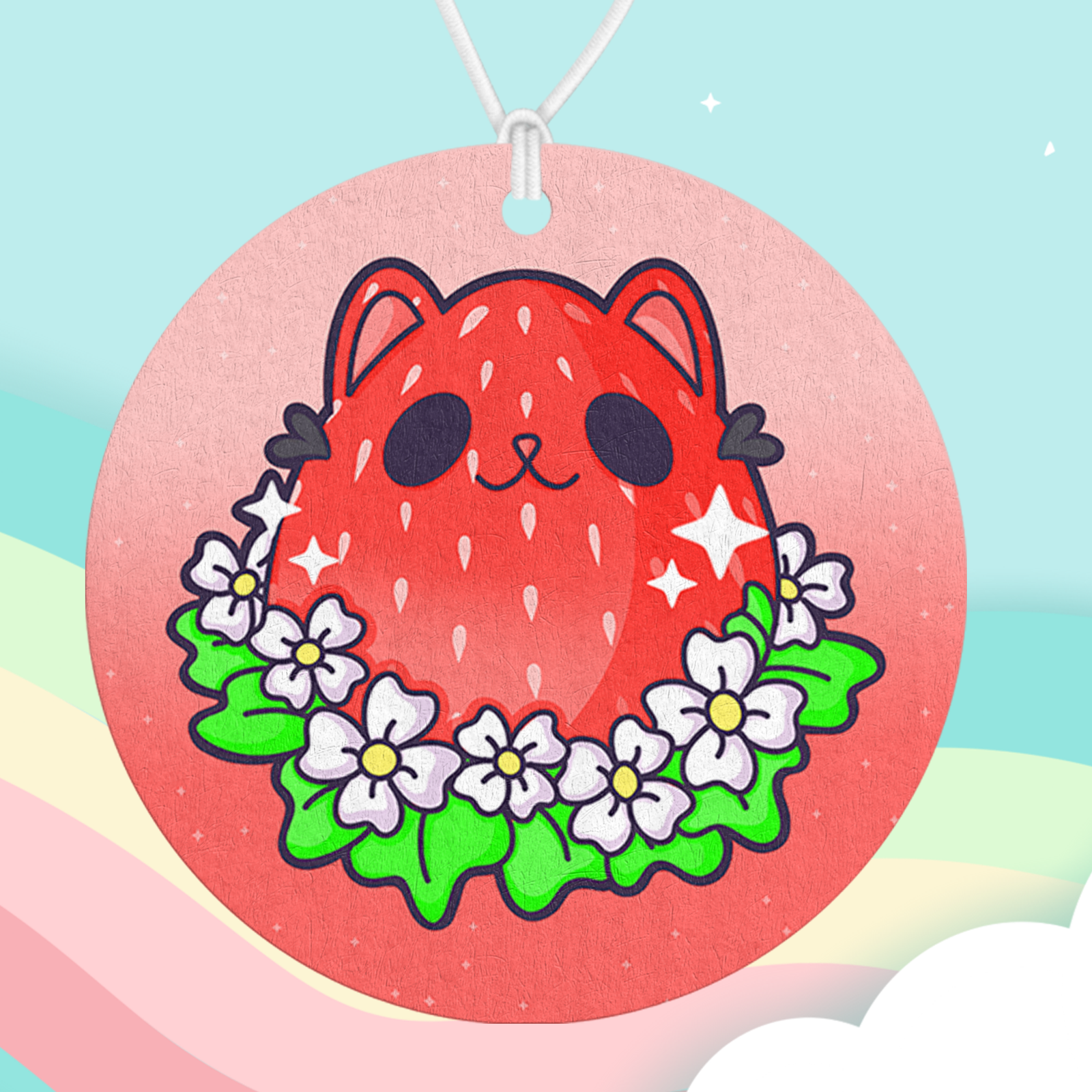 A soft and playful air freshener featuring our Berry Kitty design. Add your favorite scent and bring a little sweetness and charm to your space.