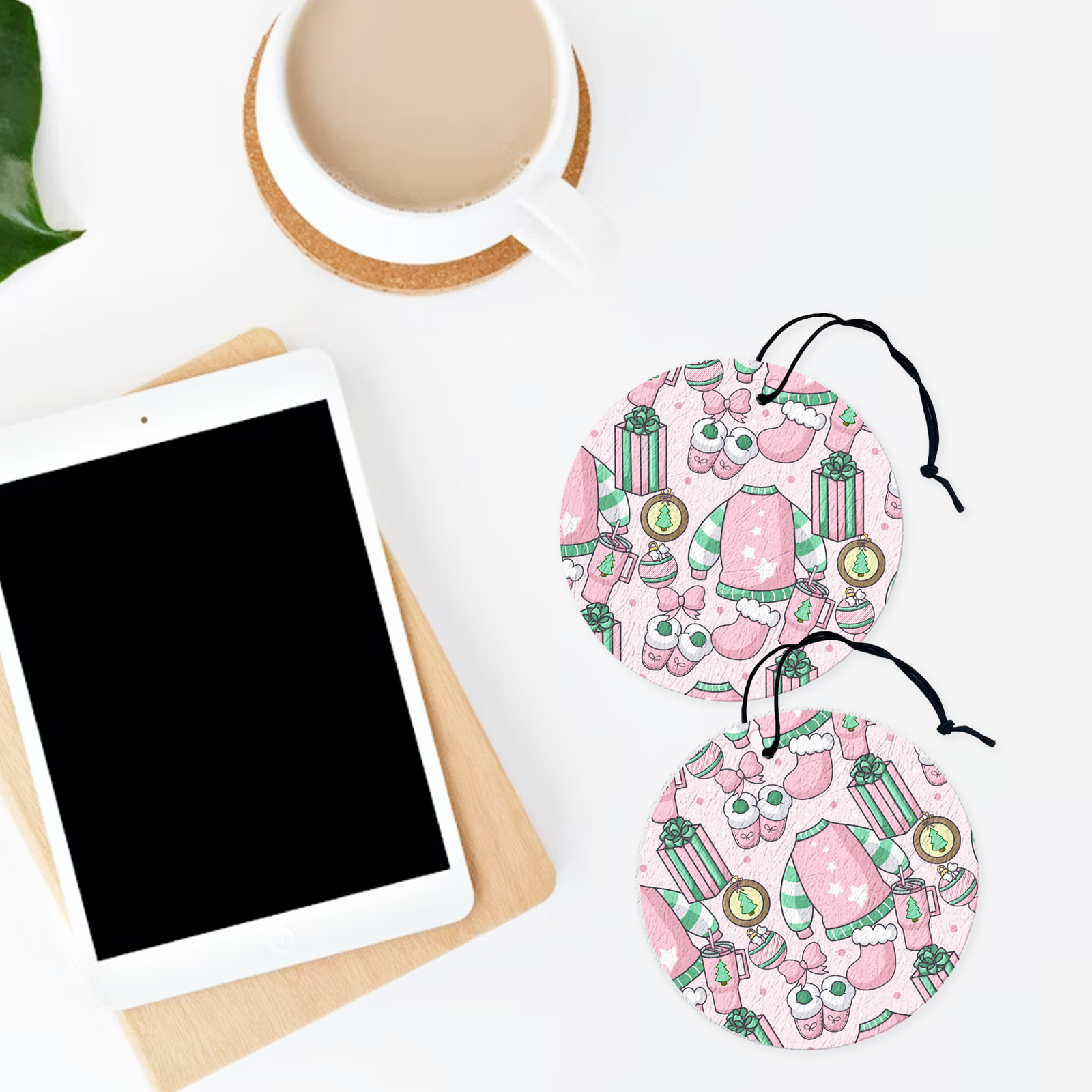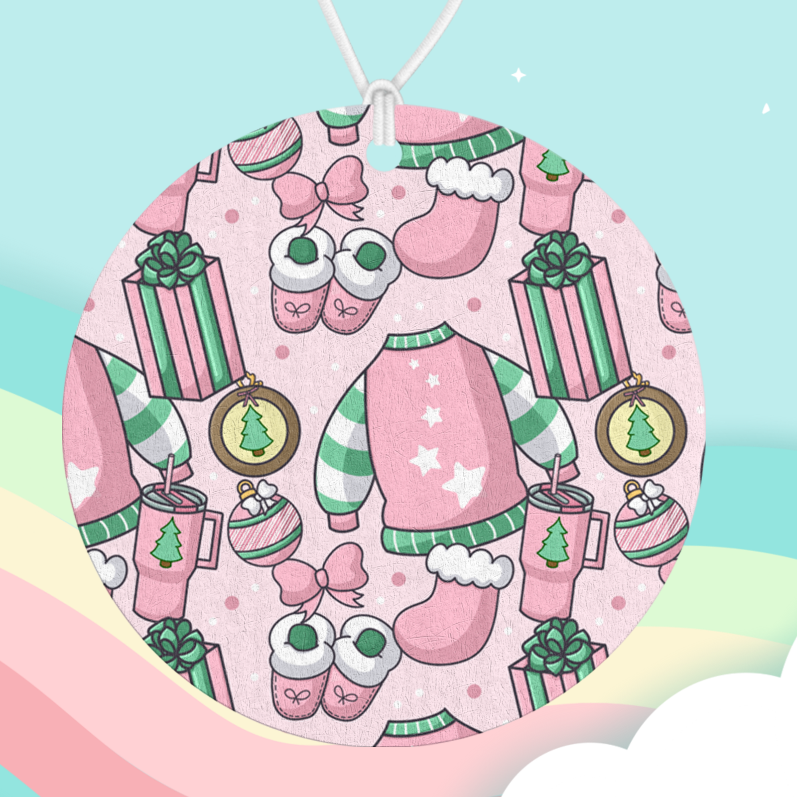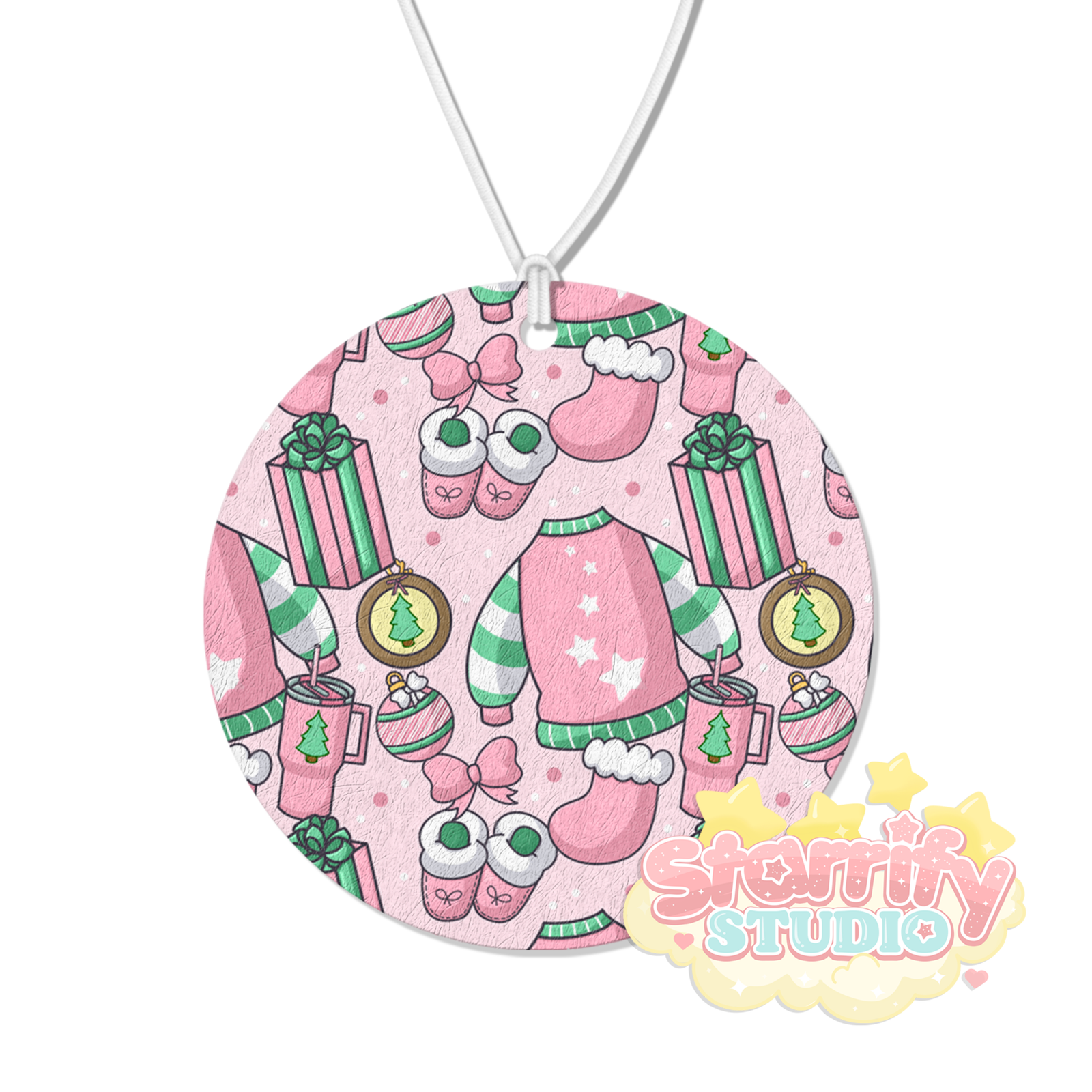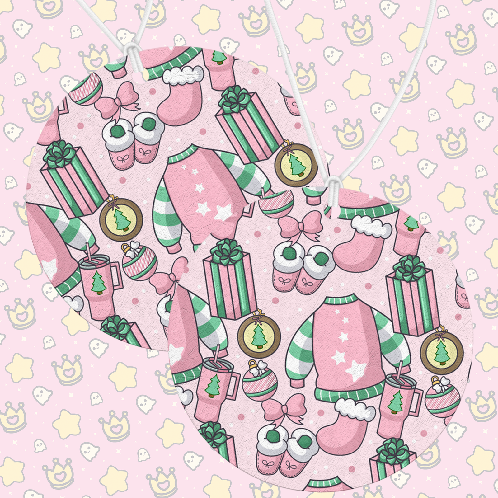 A cozy and festive air freshener featuring our Cozy Pink Christmas design. Add your favorite scent and bring a little warmth and cheerful holiday charm to your space.