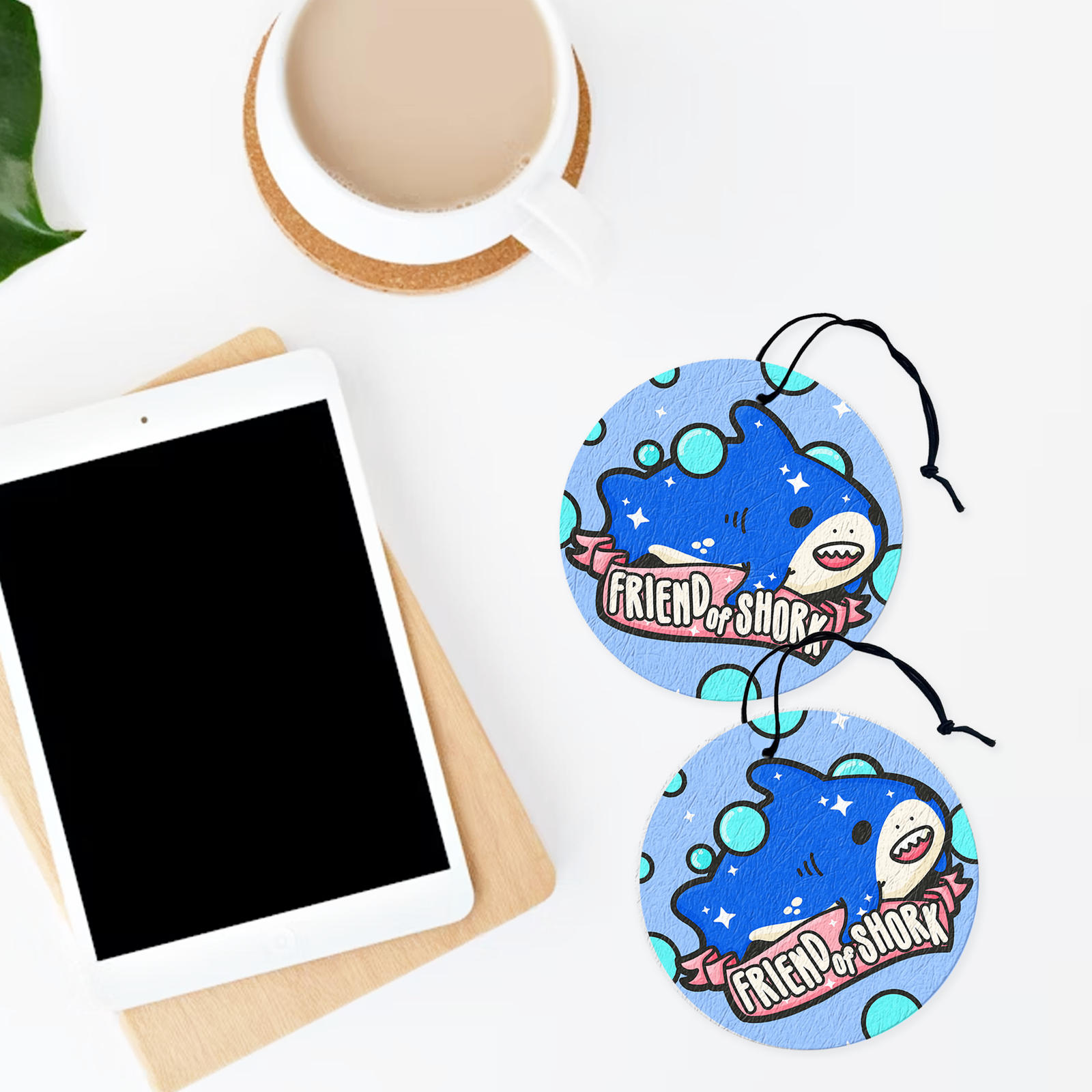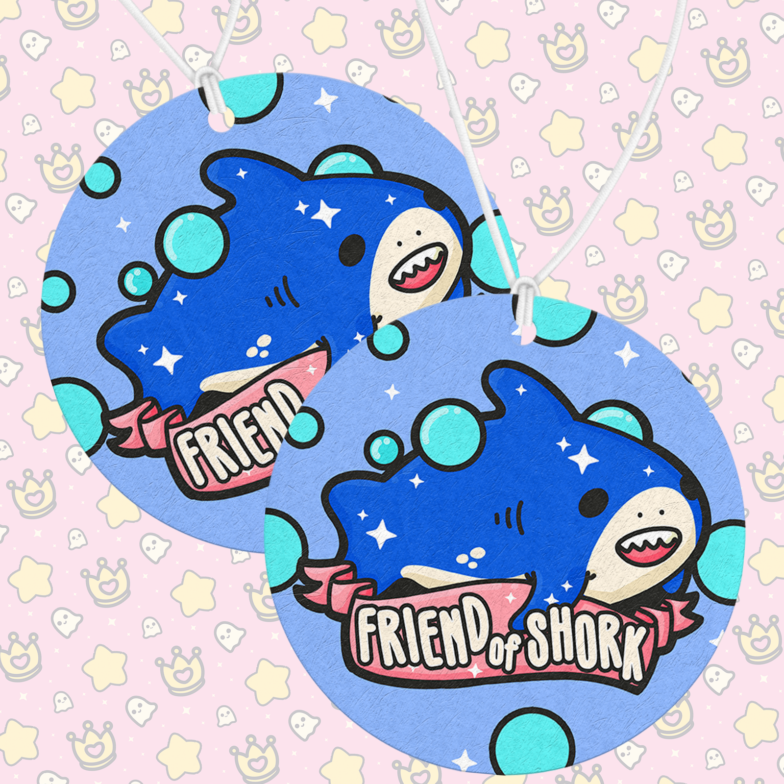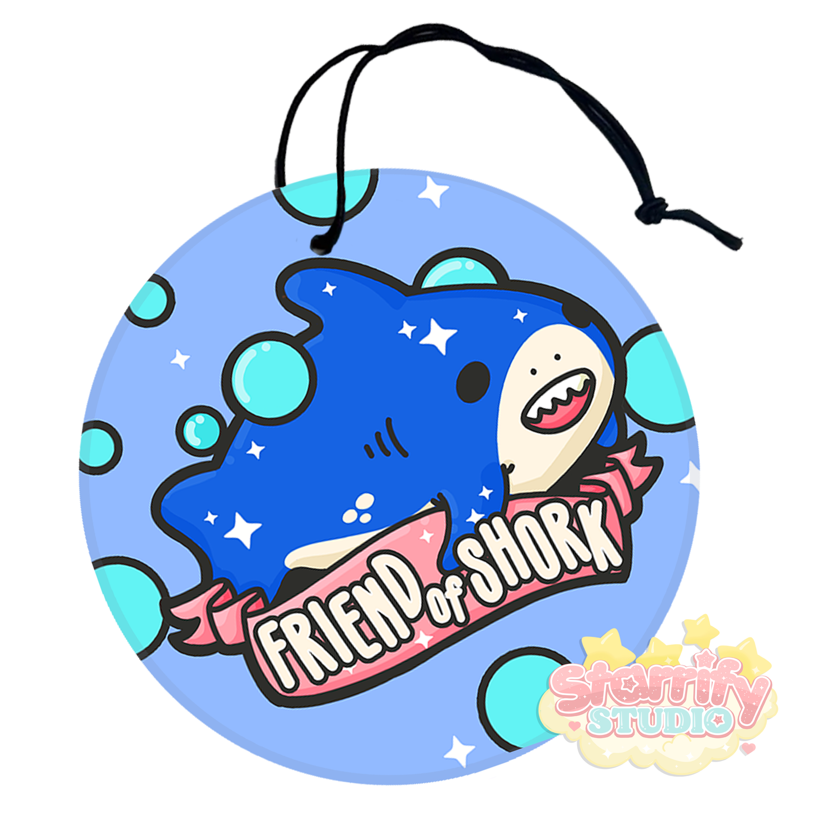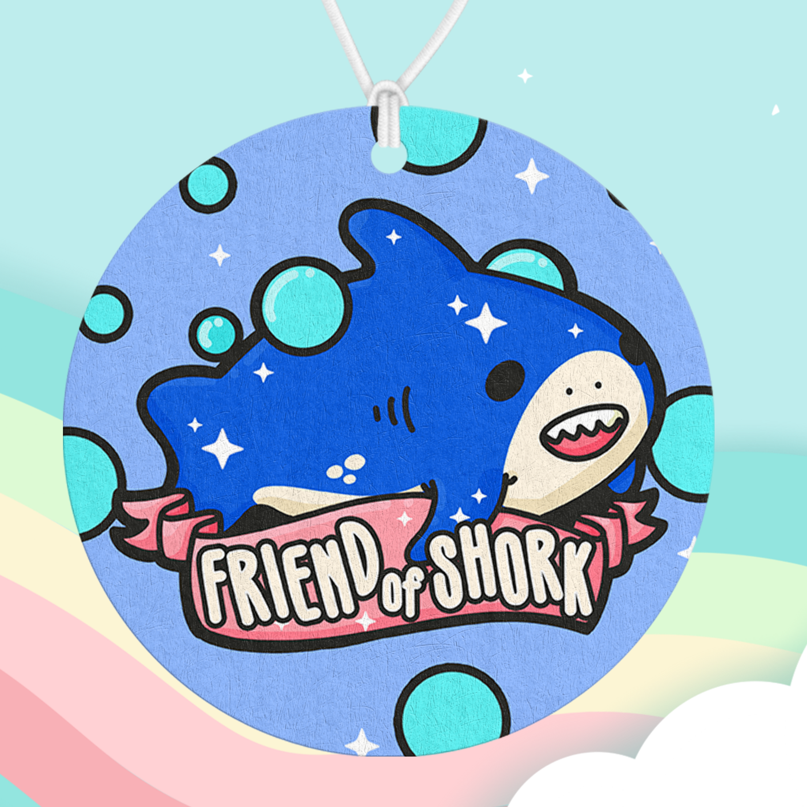 A playful “Friend of Shork” air freshener featuring a cute, not-so-scary ocean buddy. Add your favorite scent and bring a little humor and charm to your daily drive.
