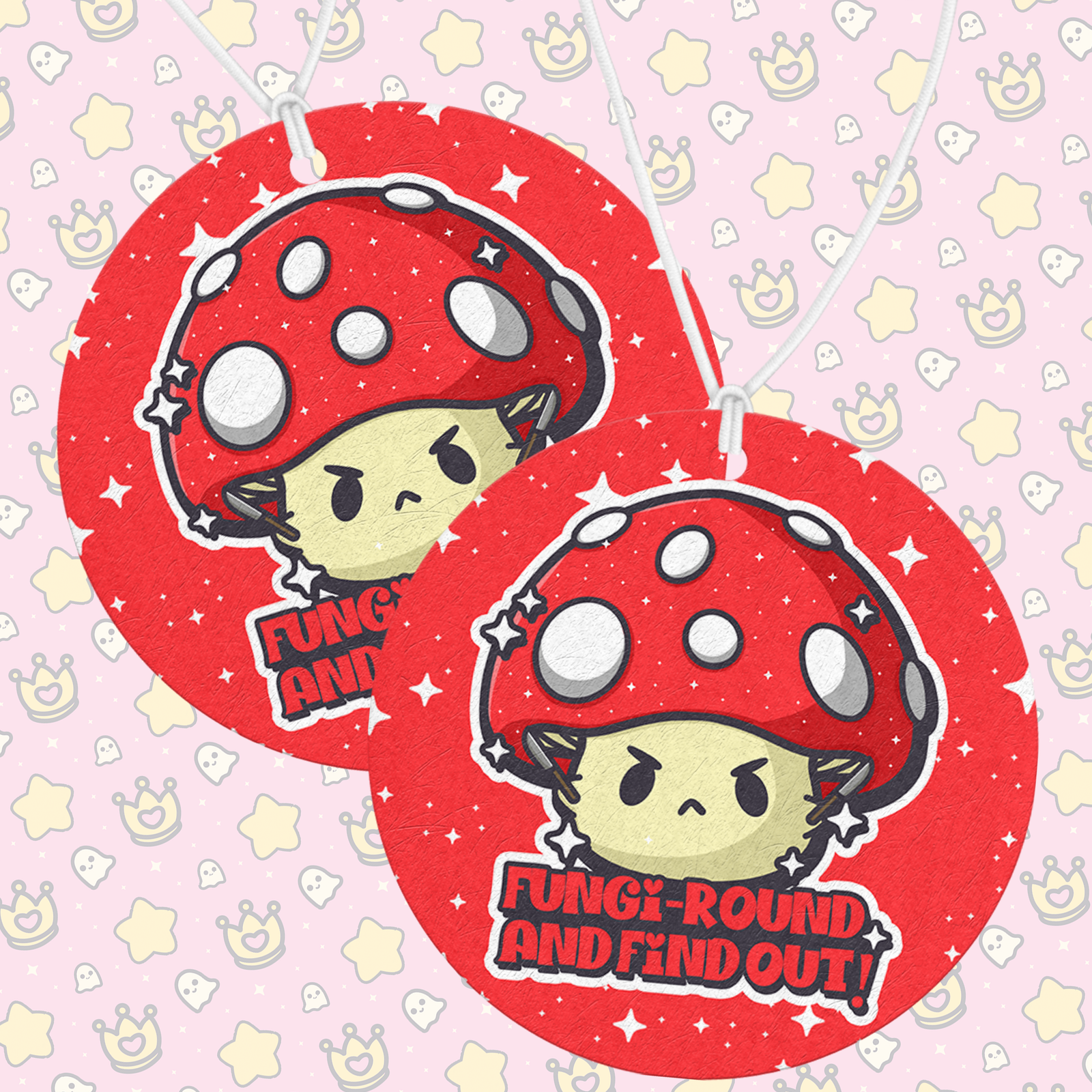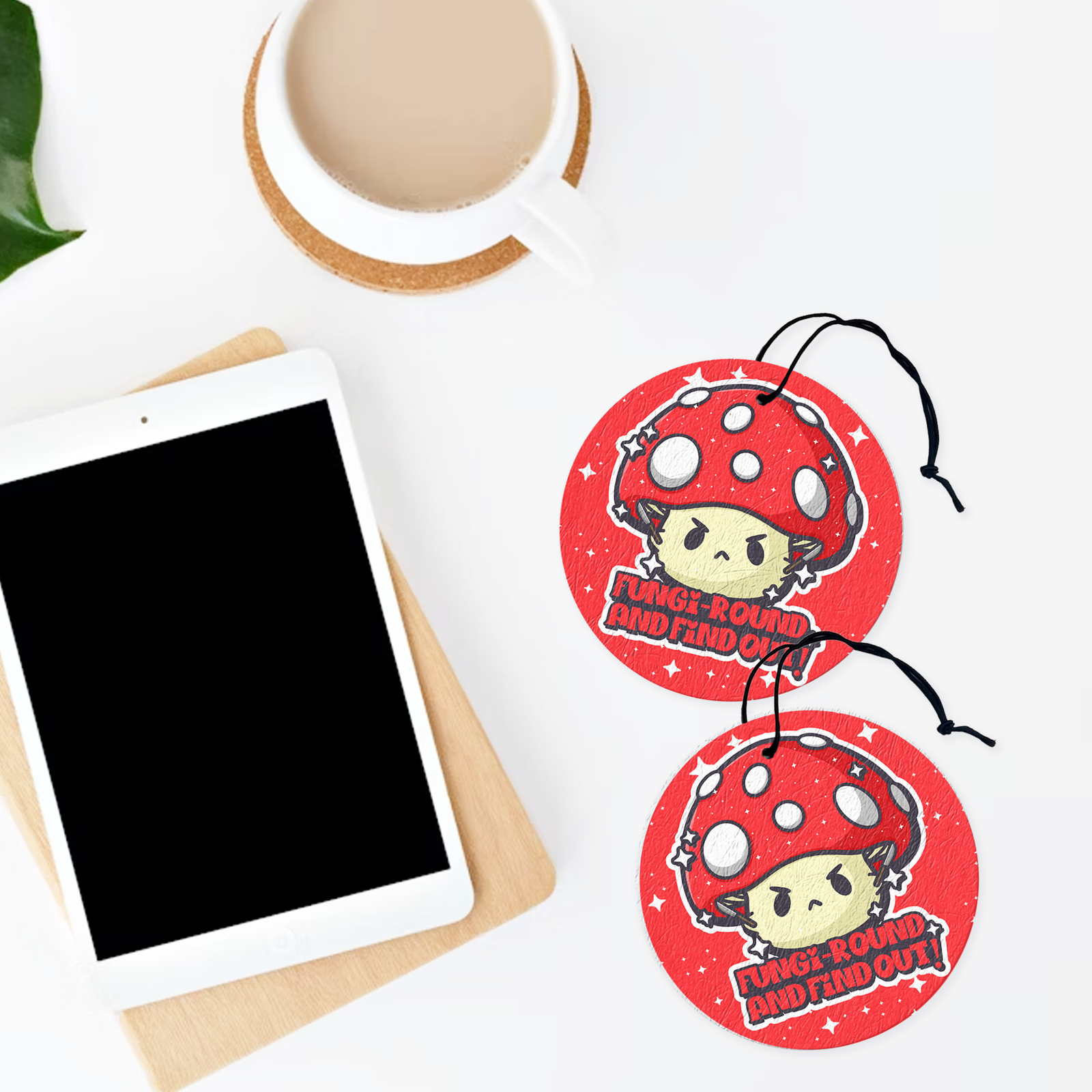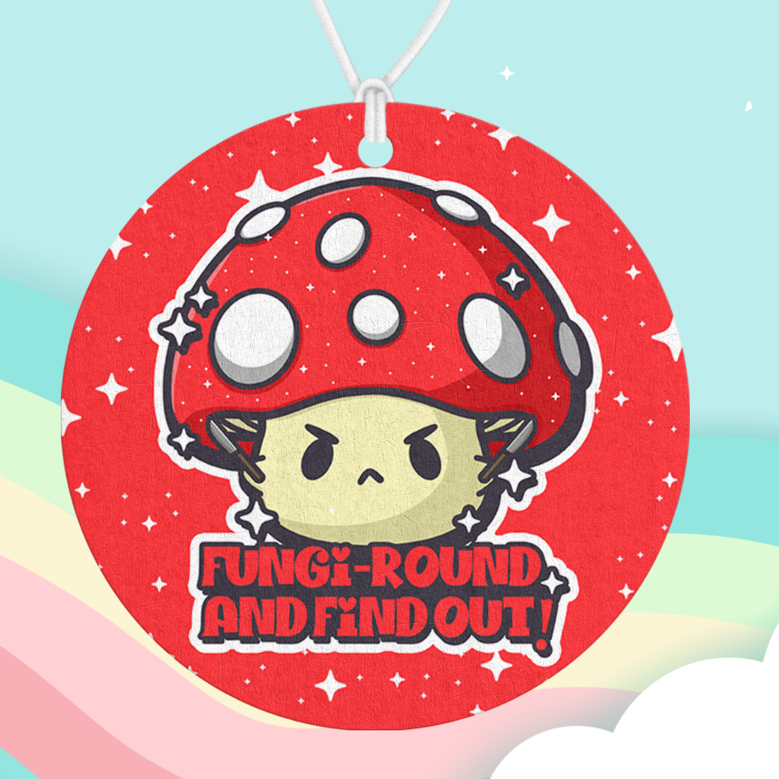 A bold and cheeky mushroom air freshener with a “Fungi Round and Find Out” attitude. Add your favorite scent and bring a little spicy personality to your space.