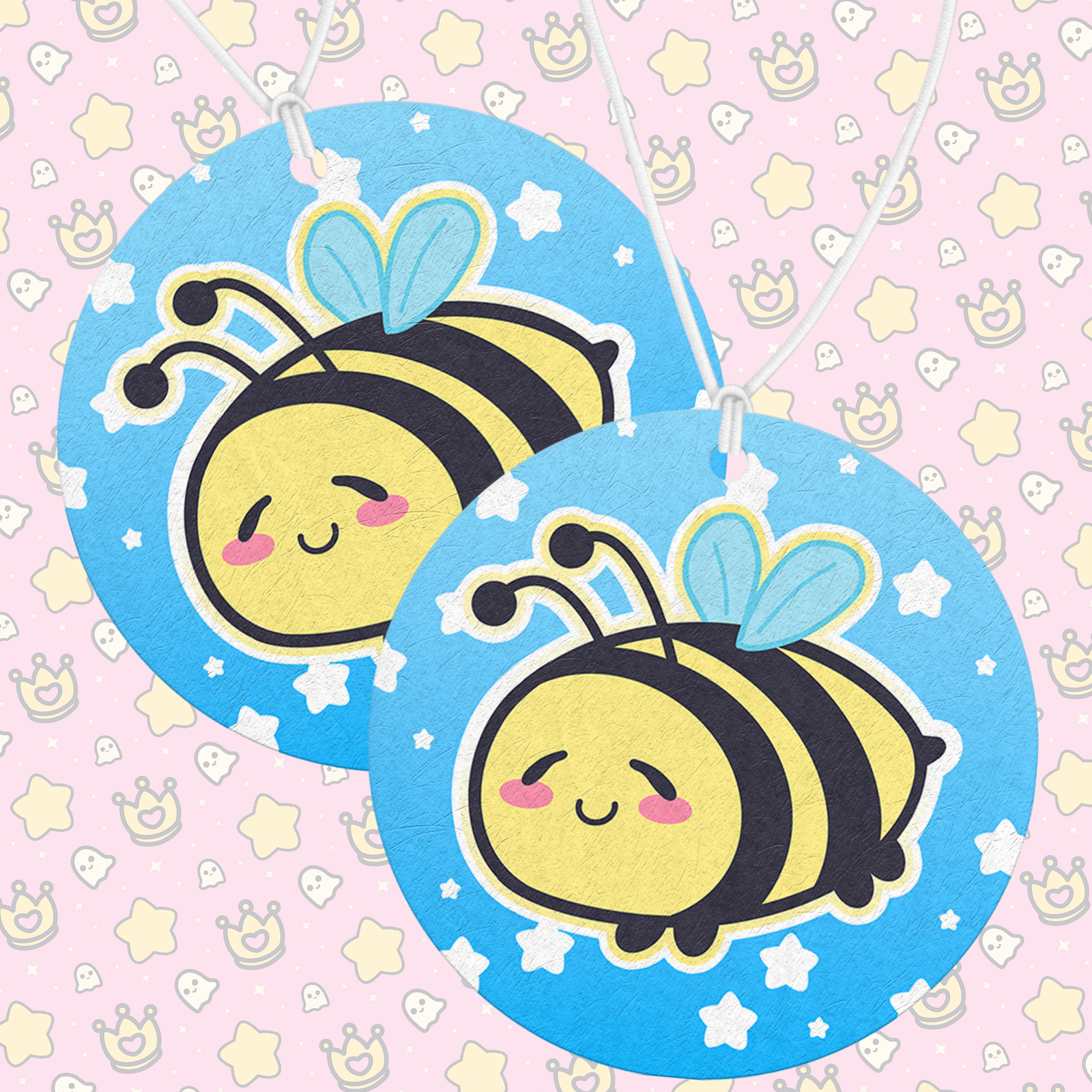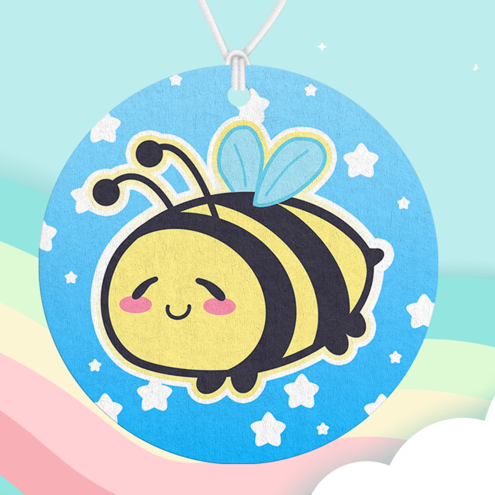 A tiny sleepy bee drifting through the sky—soft, simple, and made to bring a little calm wherever you go.
